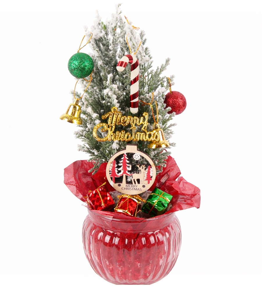 Cam Vazoda Süslü Yılbaşı Ağacı | Candy Gift