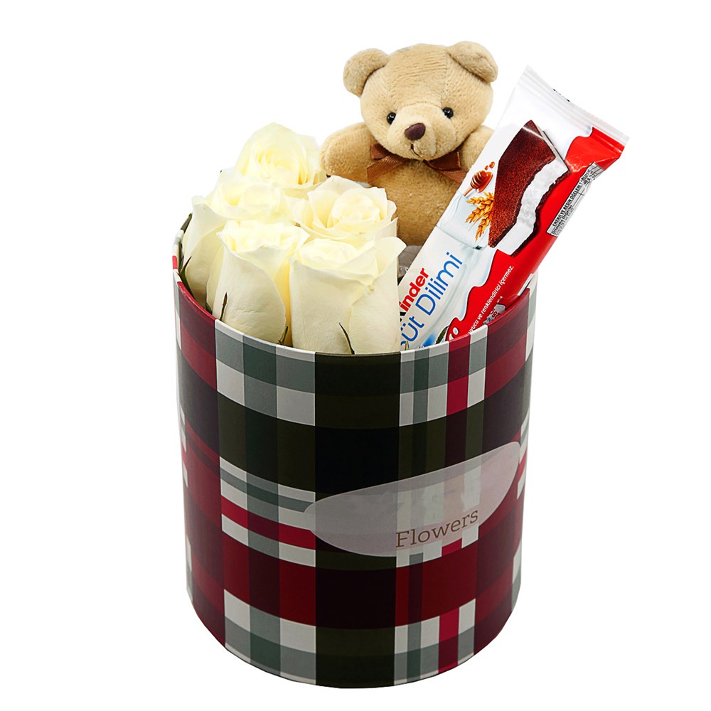 5 adet Gül, süt dilimi ve mini ayıcık bulunmaktadır.