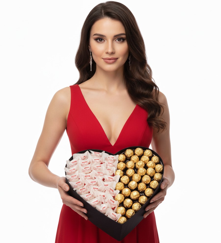 Gold Fındıklı çikolata ve Raffaello çikolata ile hazırlanmış olan dev kalp kutu hediye ile sevdiklerinizi dev mutlu edin, mutlu olun.