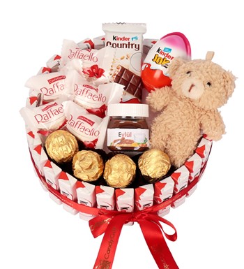 Ferrero Kinder çikolatalar ile hazırlanmış özel günlerinizi daha özel hala getirebileceğiz bu aranjman ile sevdiklerinizi mutlu edin.