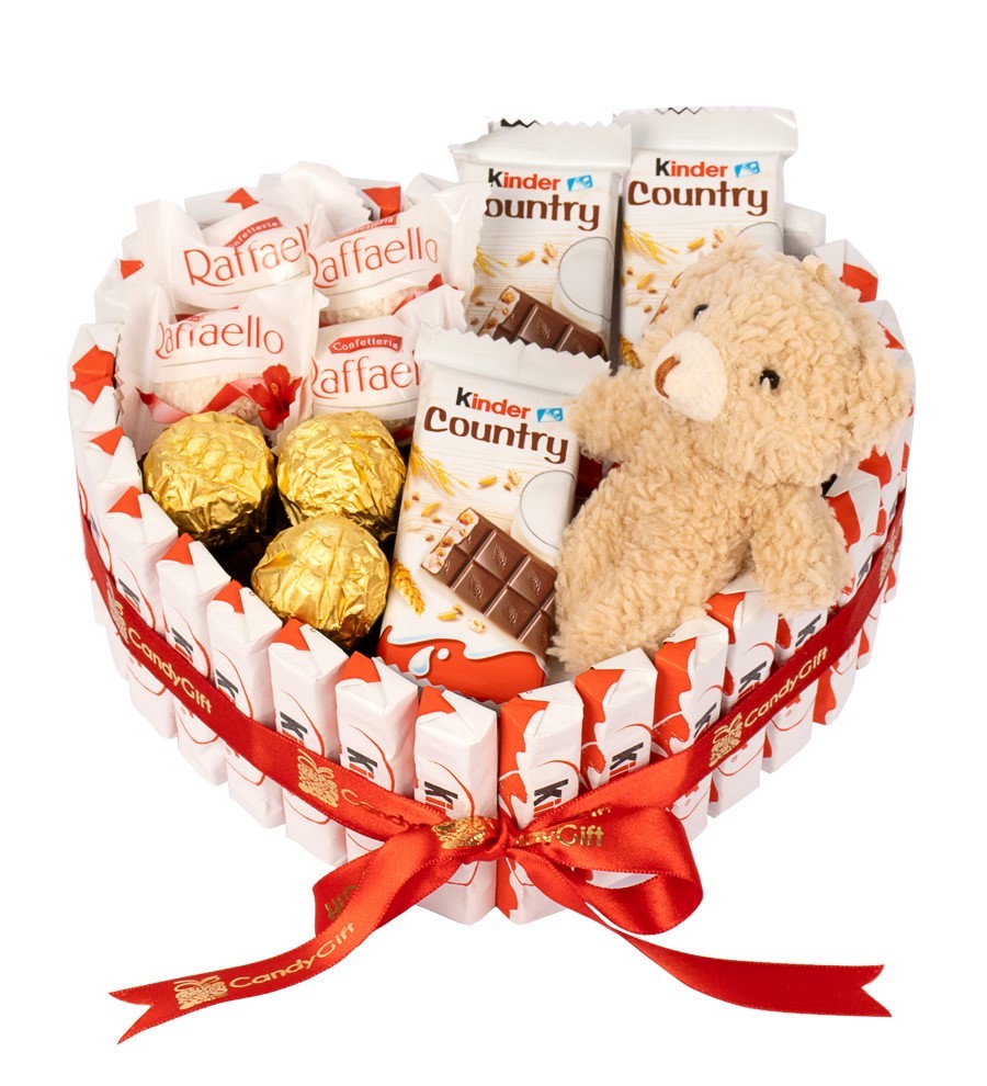 Raffaello Tekli: 4 Adet Gold Fındıklı Çikolata 3 Adet Kinder Country: 3 Adet Kinder Çikolatada: 30 Adet Mini Ayıcık: 1 Adet