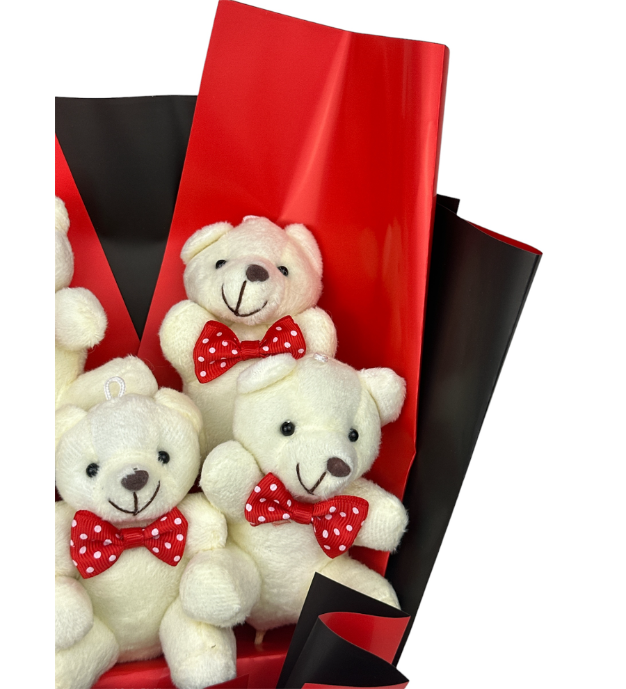 Her bir ayıcık, sevgiyle seçilmiş ve özenle yerleştirilmiş, çeşitliliği ve renkleriyle göz kamaştırıyor. Büyüklerinden küçüklerine, her bir ayı bir anlam taşıyor ve buketin her köşesinde sevgi dolu bir hikaye anlatıyor.