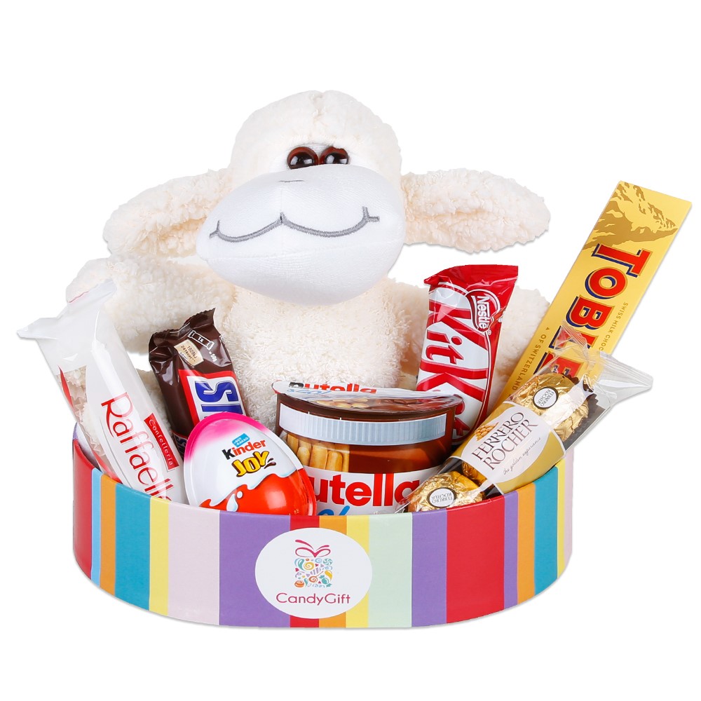 Son derece göz alıcı gökküşağı kutu içerisine sevimli mi sevimli 28 cm boyutunda seçeceğiniz peluş ve en sevdiğiniz çikolatalar konularak hazırlanmış bu harika aranjman ile sevdiklerinizi mutlu etmek çok kolay. İçindekiler: 28 cm Seçeceğiniz Peluş, Snickers 50 Gr, Raffaello 40 Gr, Ferrero Rocher 37.5 Gr, Kinder Joy, Toblerone 100 Gr, Nutella Go 52 Gr, Nestle Kitkat 42 Gr Kutu Ölçüleri: 22*17*6 cm