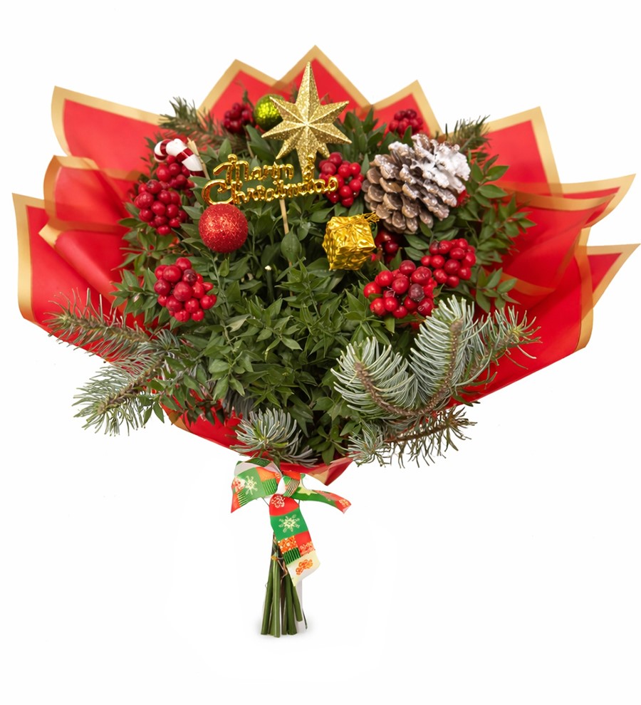 Buket üzerindeki yılbaşı süslerinin renkleri ve çeşitleri değişkenlik gösterebilir.