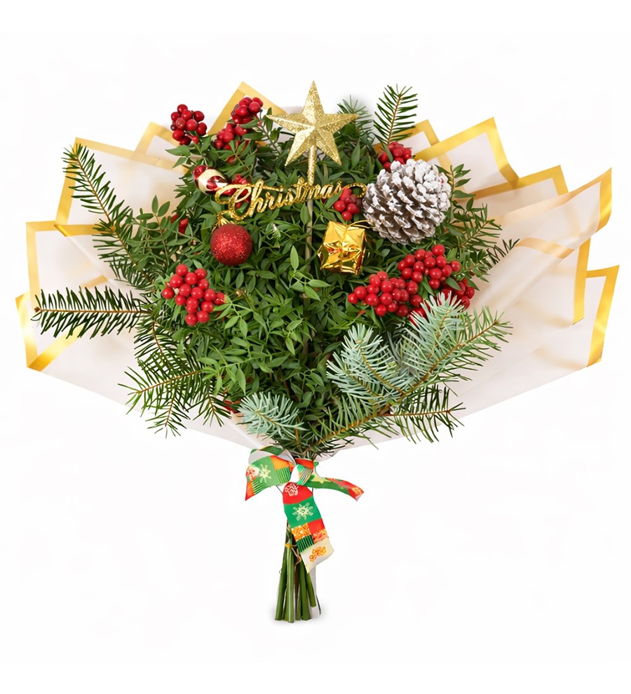 Buket üzerindeki yılbaşı süslerinin renkleri ve çeşitleri değişkenlik gösterebilir.